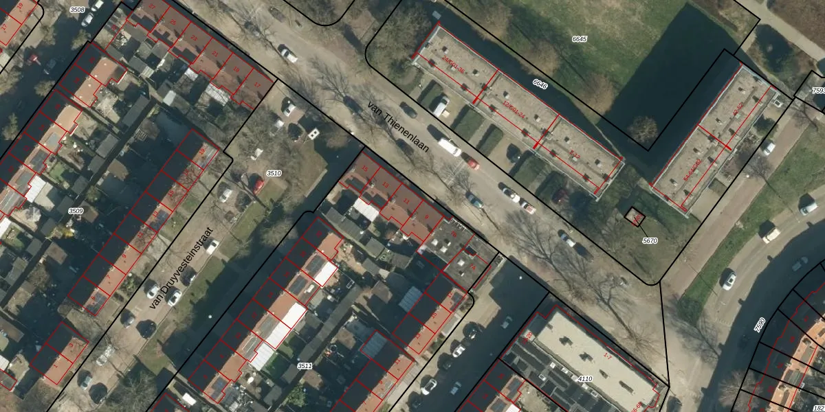 van Thienenlaan 11 is gelegen op kadastraal perceel WSL01G3511. Deze kadastrale aanduiding is uniek en wordt gebruikt door het Kadaster om eigendomsrechten en andere zakelijke rechten vast te leggen. Het perceel maakt onderdeel uit van de kadastrale gemeente Woensel.