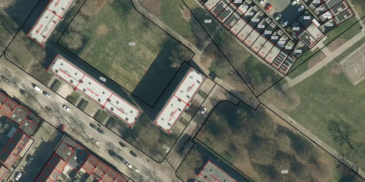 van Thienenlaan 112 is gelegen op kadastraal perceel WSL01G6642. Deze kadastrale aanduiding is uniek en wordt gebruikt door het Kadaster om eigendomsrechten en andere zakelijke rechten vast te leggen. Het perceel maakt onderdeel uit van de kadastrale gemeente Woensel.