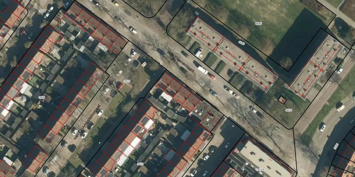 van Thienenlaan 13 is gelegen op kadastraal perceel WSL01G3511. Deze kadastrale aanduiding is uniek en wordt gebruikt door het Kadaster om eigendomsrechten en andere zakelijke rechten vast te leggen. Het perceel maakt onderdeel uit van de kadastrale gemeente Woensel.