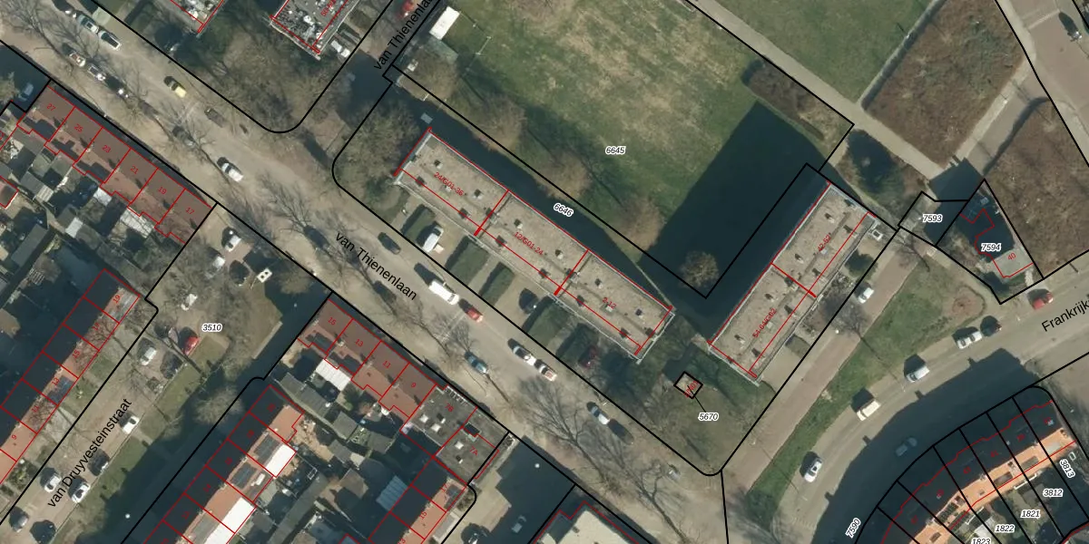 van Thienenlaan 24 is gelegen op kadastraal perceel WSL01G6646. Deze kadastrale aanduiding is uniek en wordt gebruikt door het Kadaster om eigendomsrechten en andere zakelijke rechten vast te leggen. Het perceel maakt onderdeel uit van de kadastrale gemeente Woensel.