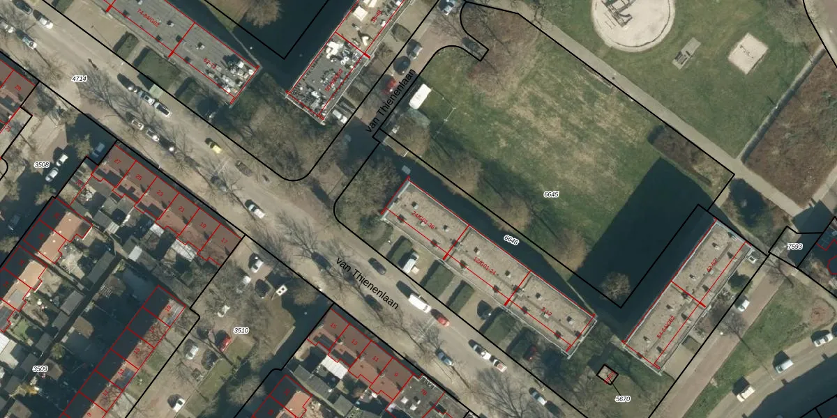 van Thienenlaan 24-G02 is gelegen op kadastraal perceel WSL01G6646. Deze kadastrale aanduiding is uniek en wordt gebruikt door het Kadaster om eigendomsrechten en andere zakelijke rechten vast te leggen. Het perceel maakt onderdeel uit van de kadastrale gemeente Woensel.