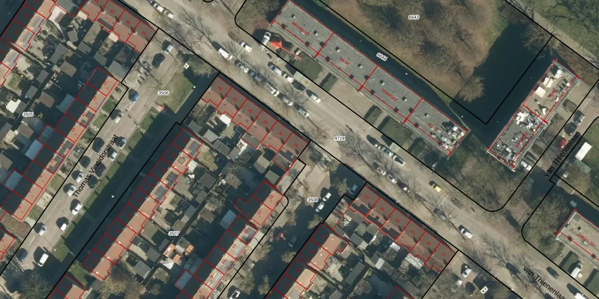 van Thienenlaan 29 is gelegen op kadastraal perceel WSL01G3507. Deze kadastrale aanduiding is uniek en wordt gebruikt door het Kadaster om eigendomsrechten en andere zakelijke rechten vast te leggen. Het perceel maakt onderdeel uit van de kadastrale gemeente Woensel.