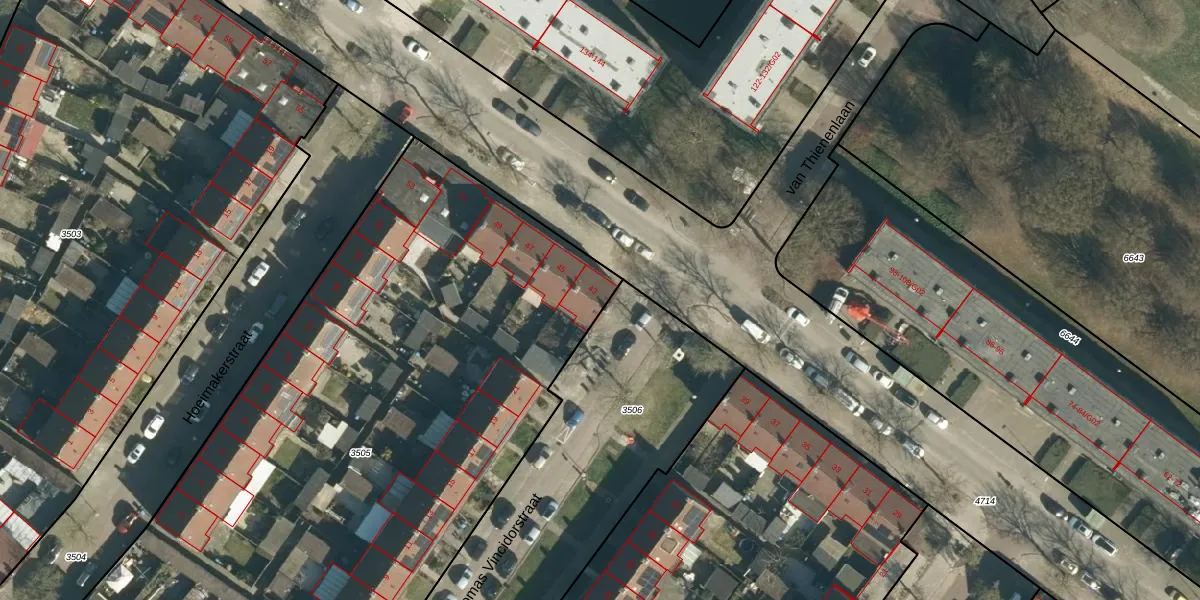 van Thienenlaan 43 is gelegen op kadastraal perceel WSL01G3505. Deze kadastrale aanduiding is uniek en wordt gebruikt door het Kadaster om eigendomsrechten en andere zakelijke rechten vast te leggen. Het perceel maakt onderdeel uit van de kadastrale gemeente Woensel.