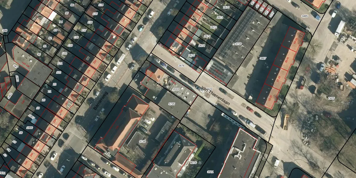 van Thienenlaan 77 is gelegen op kadastraal perceel WSL01G2033. Deze kadastrale aanduiding is uniek en wordt gebruikt door het Kadaster om eigendomsrechten en andere zakelijke rechten vast te leggen. Het perceel maakt onderdeel uit van de kadastrale gemeente Woensel.
