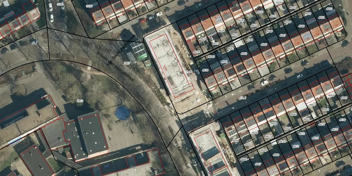 Het adres is gelegen op perceel 1539 in de sectie L en de kadastrale gemeente Woensel. De kadastrale aanduiding is aldus WSL01-L-1539. De gemiddelde perceeloppervlakte in de kadastrale gemeente Woensel is 1038,24 m². Dit perceel is met zijn 1073 m² dus groter dan gemiddeld. De grootste perceeloppervlakte in de kadastrale gemeente is 74,9 ha. De kleinste oppervlakte bedraagt 0 m². Op het perceel liggen in totaal 14 adressen. In de Basisregistratie Kadaster (BRK) werden de grenzen van het perceel geregistreerd op 12-04-2006.