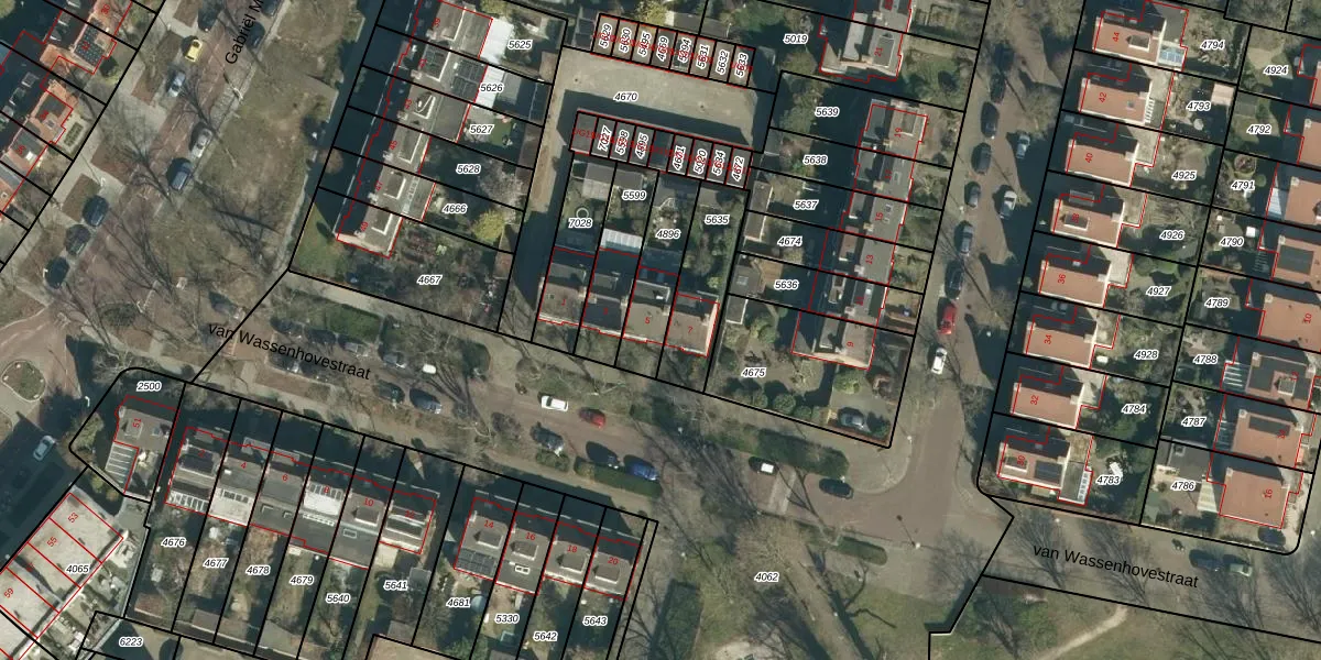 van Wassenhovestraat 5 is gelegen op kadastraal perceel STM00E4896. Deze kadastrale aanduiding is uniek en wordt gebruikt door het Kadaster om eigendomsrechten en andere zakelijke rechten vast te leggen. Het perceel maakt onderdeel uit van de kadastrale gemeente Stratum.