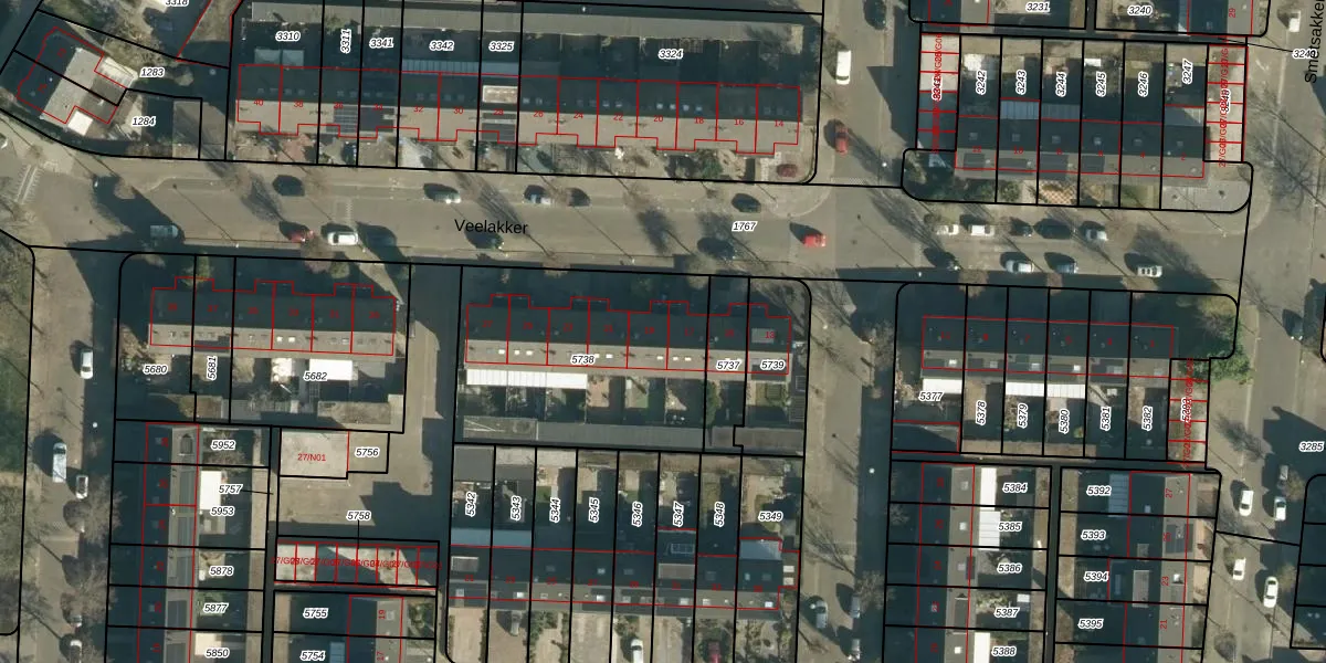 Veelakker 19 is gelegen op kadastraal perceel WSL01L5738. Deze kadastrale aanduiding is uniek en wordt gebruikt door het Kadaster om eigendomsrechten en andere zakelijke rechten vast te leggen. Het perceel maakt onderdeel uit van de kadastrale gemeente Woensel.