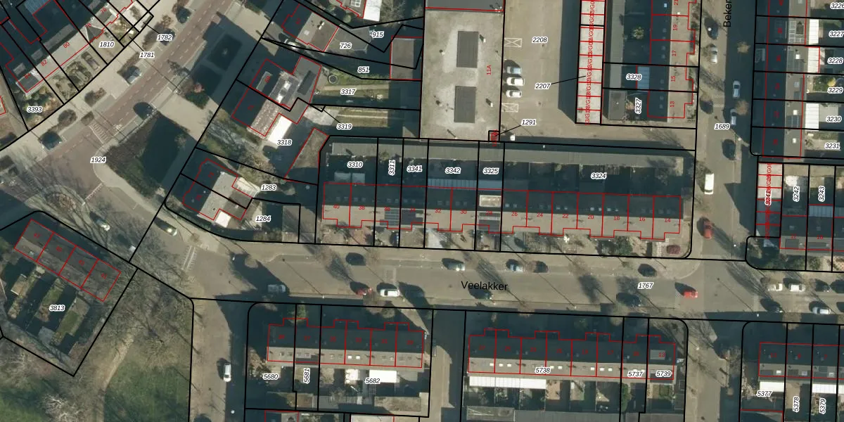 Gebruik de zoekbalk of klik op een perceel voor informatie over de adressen binnen dit perceel.