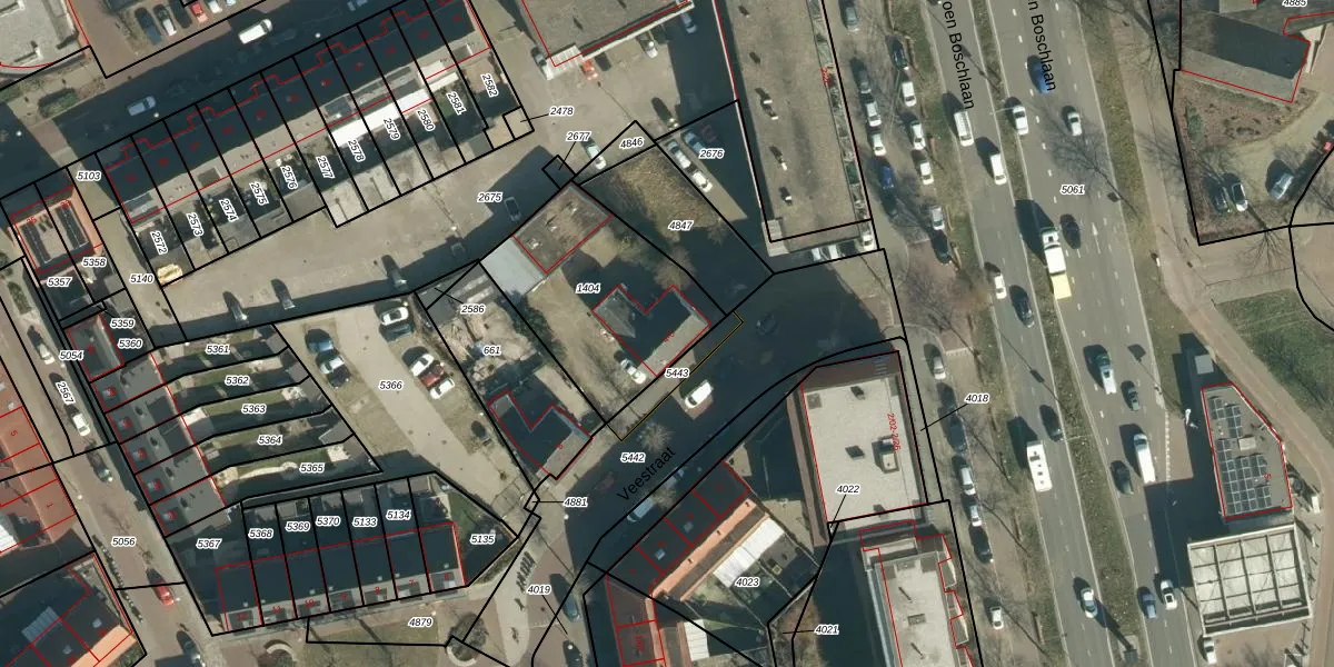 Het perceel waarop Veestraat 4-04 staat heeft een oppervlakte van 678 m². Dit is een groot perceel. De perceeloppervlakte wordt geregistreerd door het Kadaster. Gedetailleerde informatie over de maten van dit perceel kunt u vinden in het rapport Kadastrale kaart met maatvoering van Veestraat 4-04.