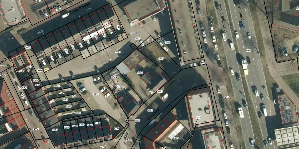 Het perceel waarop Veestraat 6-10 staat heeft een oppervlakte van 678 m². Dit is een groot perceel. De perceeloppervlakte wordt geregistreerd door het Kadaster. Gedetailleerde informatie over de maten van dit perceel kunt u vinden in het rapport Kadastrale kaart met maatvoering van Veestraat 6-10.