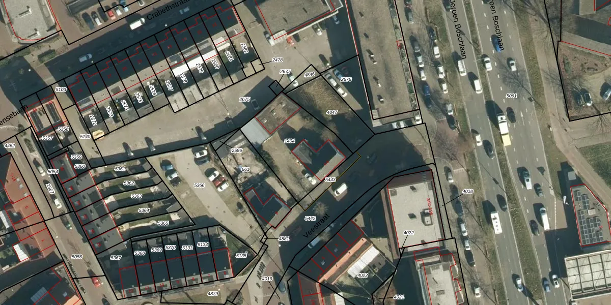 Veestraat 6-18 is gelegen op kadastraal perceel TGR00E1404. Deze kadastrale aanduiding is uniek en wordt gebruikt door het Kadaster om eigendomsrechten en andere zakelijke rechten vast te leggen. Het perceel maakt onderdeel uit van de kadastrale gemeente Tongelre.