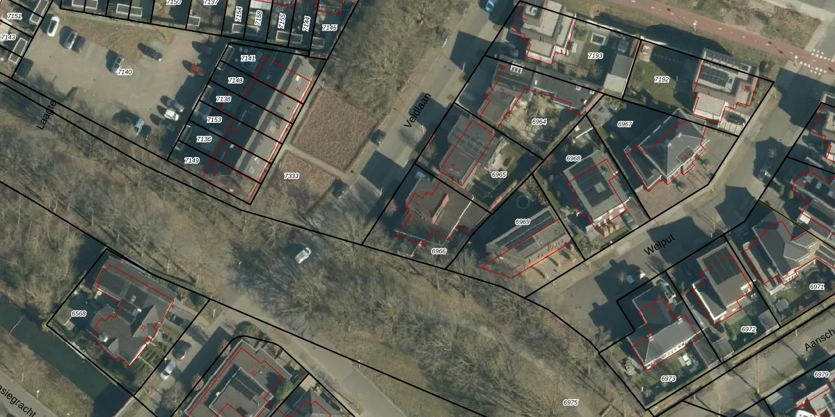 Veldlaan 7 is gelegen op kadastraal perceel WSL01W6966. Deze kadastrale aanduiding is uniek en wordt gebruikt door het Kadaster om eigendomsrechten en andere zakelijke rechten vast te leggen. Het perceel maakt onderdeel uit van de kadastrale gemeente Woensel.