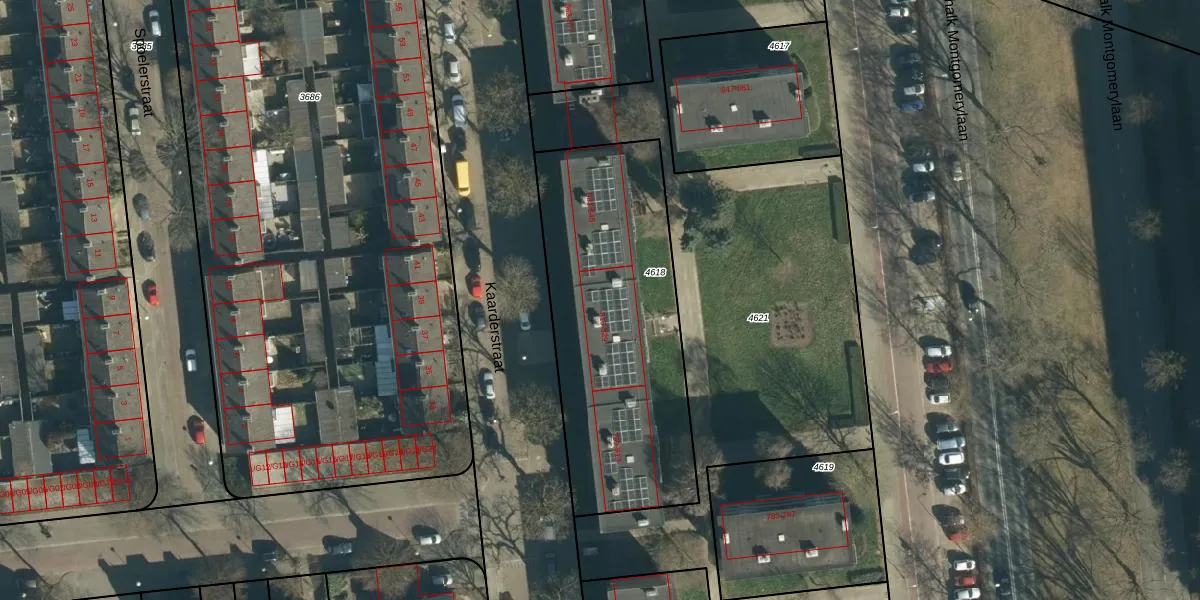 Veldmaarschalk Montgomerylaan 821 is gelegen op kadastraal perceel WSL01G4618. Deze kadastrale aanduiding is uniek en wordt gebruikt door het Kadaster om eigendomsrechten en andere zakelijke rechten vast te leggen. Het perceel maakt onderdeel uit van de kadastrale gemeente Woensel.