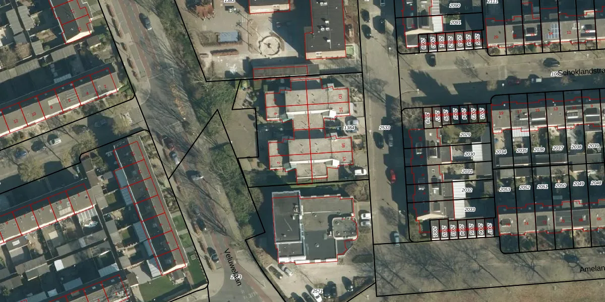 Veluwelaan 4 is gelegen op kadastraal perceel WSL01R1384. Deze kadastrale aanduiding is uniek en wordt gebruikt door het Kadaster om eigendomsrechten en andere zakelijke rechten vast te leggen. Het perceel maakt onderdeel uit van de kadastrale gemeente Woensel.