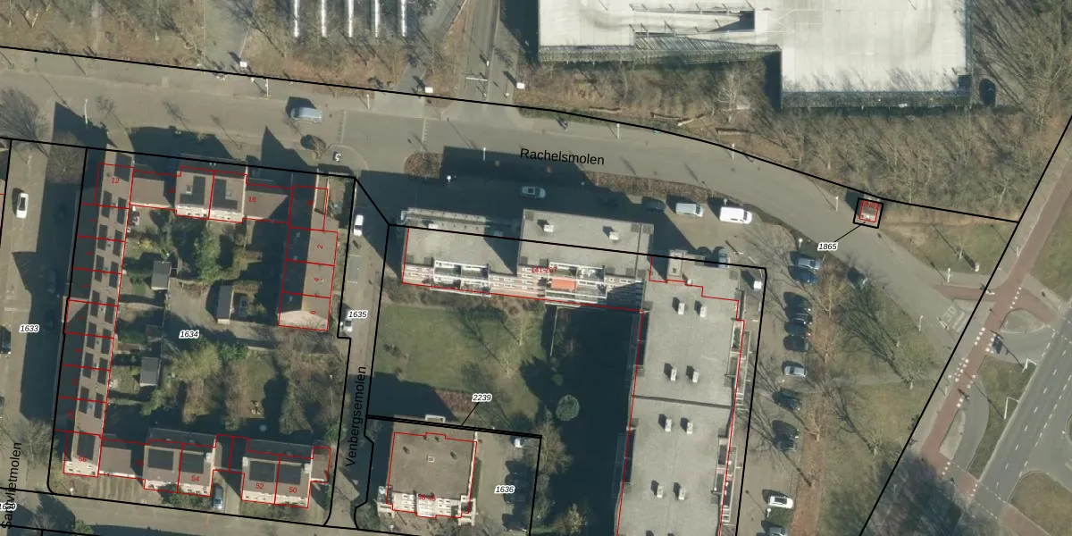 Het perceel waarop Venbergsemolen 197 staat heeft een oppervlakte van 8210 m². Dit is een zeer groot perceel. De perceeloppervlakte wordt geregistreerd door het Kadaster. Gedetailleerde informatie over de maten van dit perceel kunt u vinden in het rapport Kadastrale kaart met maatvoering van Venbergsemolen 197.