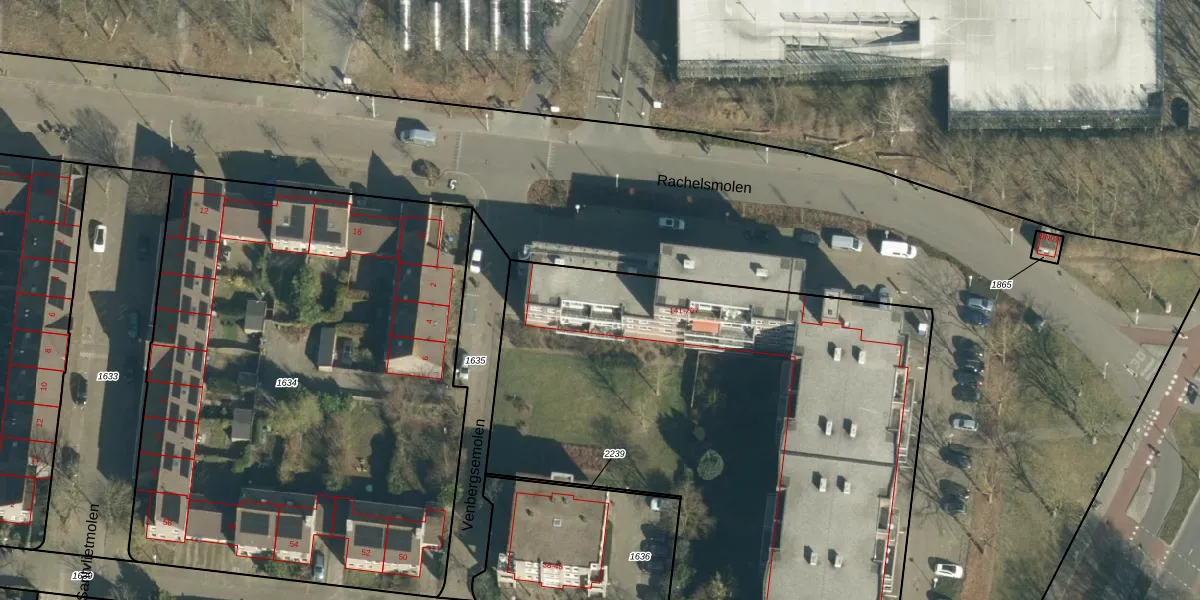 Het perceel waarop Venbergsemolen 209 staat heeft een oppervlakte van 8210 m². Dit is een zeer groot perceel. De perceeloppervlakte wordt geregistreerd door het Kadaster. Gedetailleerde informatie over de maten van dit perceel kunt u vinden in het rapport Kadastrale kaart met maatvoering van Venbergsemolen 209.