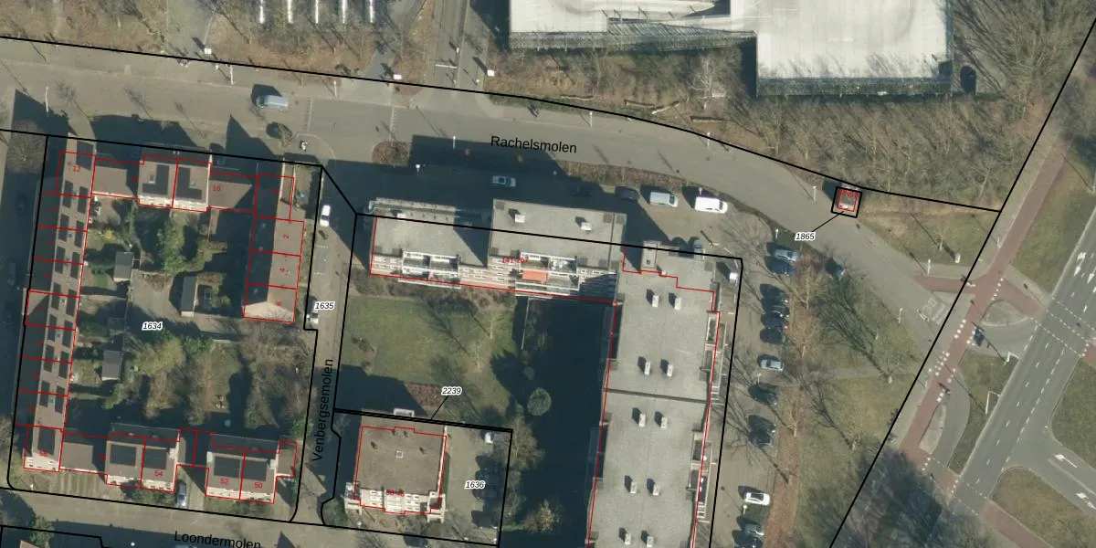 Het perceel waarop Venbergsemolen 221 staat heeft een oppervlakte van 8210 m². Dit is een zeer groot perceel. De perceeloppervlakte wordt geregistreerd door het Kadaster. Gedetailleerde informatie over de maten van dit perceel kunt u vinden in het rapport Kadastrale kaart met maatvoering van Venbergsemolen 221.