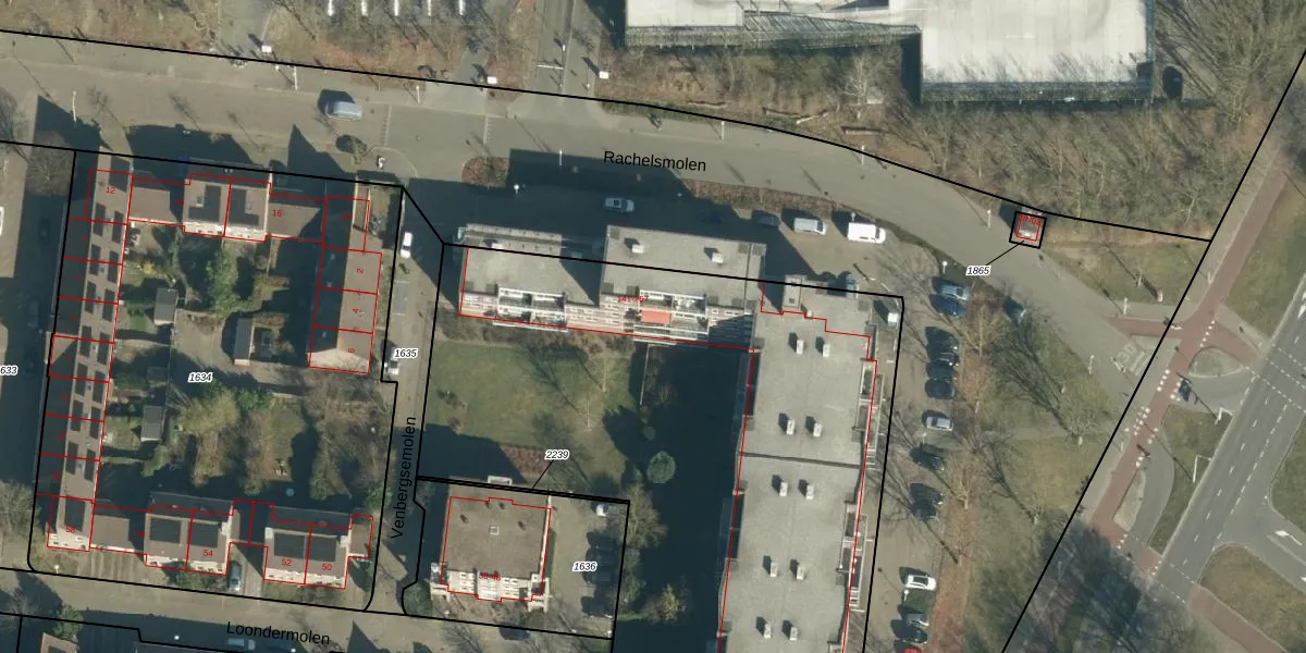 Het perceel waarop Venbergsemolen 251 staat heeft een oppervlakte van 8210 m². Dit is een zeer groot perceel. De perceeloppervlakte wordt geregistreerd door het Kadaster. Gedetailleerde informatie over de maten van dit perceel kunt u vinden in het rapport Kadastrale kaart met maatvoering van Venbergsemolen 251.