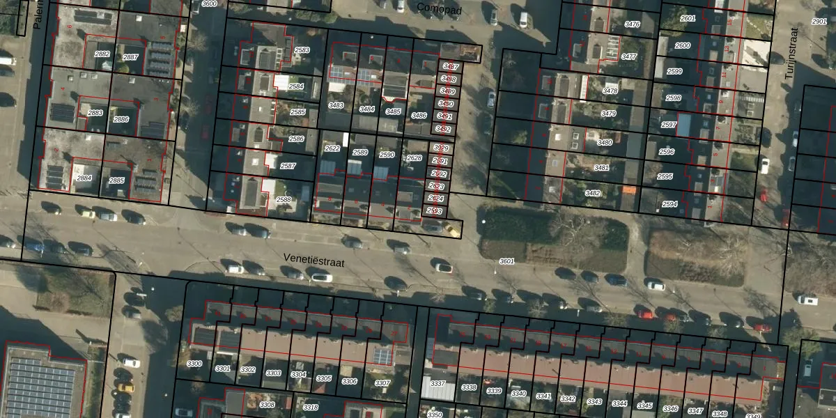 Het perceel waarop Venetiëstraat 2 staat heeft een oppervlakte van 185 m². Dit is een middelgroot perceel. De perceeloppervlakte wordt geregistreerd door het Kadaster. Gedetailleerde informatie over de maten van dit perceel kunt u vinden in het rapport Kadastrale kaart met maatvoering van Venetiëstraat 2.