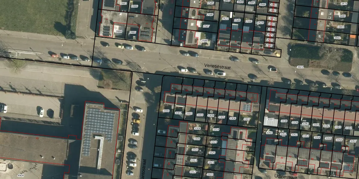 Venetiëstraat 41 is gelegen op kadastraal perceel WSL01C3300. Deze kadastrale aanduiding is uniek en wordt gebruikt door het Kadaster om eigendomsrechten en andere zakelijke rechten vast te leggen. Het perceel maakt onderdeel uit van de kadastrale gemeente Woensel.
