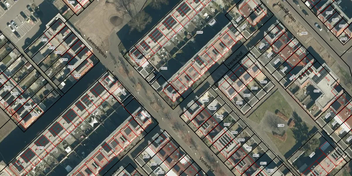 Het perceel waarop Venkelhof 18 staat heeft een oppervlakte van 2380 m². Dit is een zeer groot perceel. De perceeloppervlakte wordt geregistreerd door het Kadaster. Gedetailleerde informatie over de maten van dit perceel kunt u vinden in het rapport Kadastrale kaart met maatvoering van Venkelhof 18.