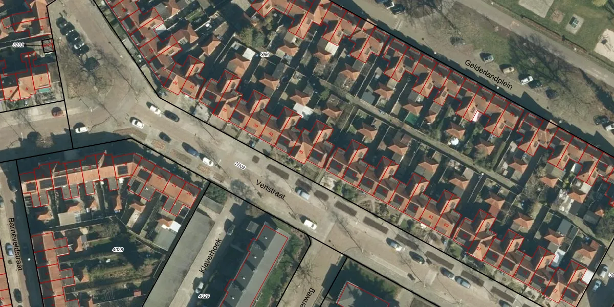 Het perceel waarop Venstraat 45 staat heeft een oppervlakte van 1,4 ha. Dit is een zeer groot perceel. De perceeloppervlakte wordt geregistreerd door het Kadaster. Gedetailleerde informatie over de maten van dit perceel kunt u vinden in het rapport Kadastrale kaart met maatvoering van Venstraat 45.