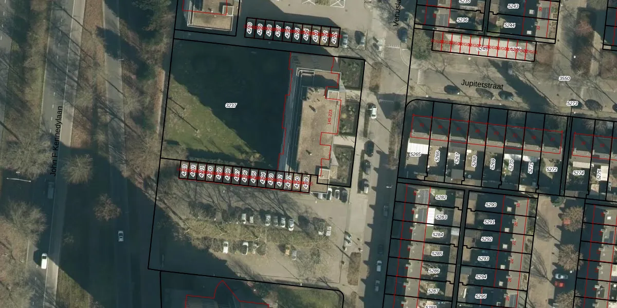 Het perceel waarop Venuslaan 173 staat heeft een oppervlakte van 2460 m². Dit is een zeer groot perceel. De perceeloppervlakte wordt geregistreerd door het Kadaster. Gedetailleerde informatie over de maten van dit perceel kunt u vinden in het rapport Kadastrale kaart met maatvoering van Venuslaan 173.