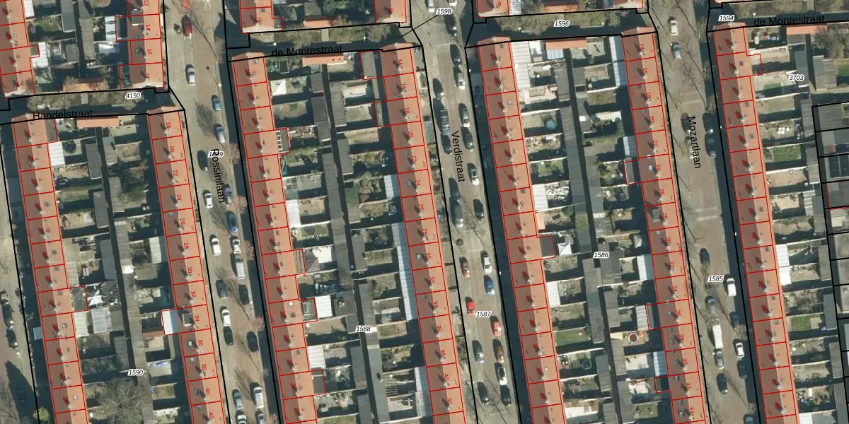 Het perceel waarop Verdistraat 26 staat heeft een oppervlakte van 6330 m². Dit is een zeer groot perceel. De perceeloppervlakte wordt geregistreerd door het Kadaster. Gedetailleerde informatie over de maten van dit perceel kunt u vinden in het rapport Kadastrale kaart met maatvoering van Verdistraat 26.