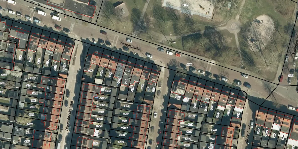 Het perceel waarop Verhulststraat 24 staat heeft een oppervlakte van 164 m². Dit is een middelgroot perceel. De perceeloppervlakte wordt geregistreerd door het Kadaster. Gedetailleerde informatie over de maten van dit perceel kunt u vinden in het rapport Kadastrale kaart met maatvoering van Verhulststraat 24.