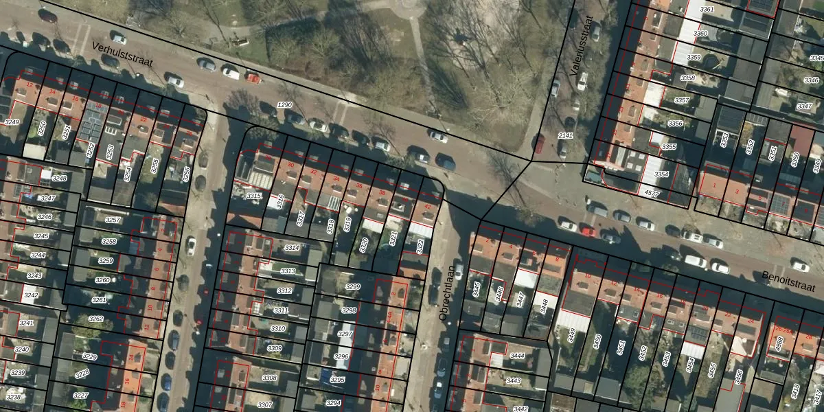 Gebruik de zoekbalk of klik op een perceel voor informatie over de adressen binnen dit perceel.
