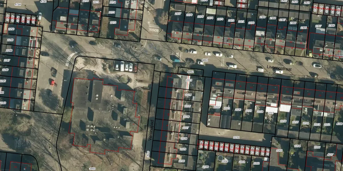 Gebruik de zoekbalk of klik op een perceel voor informatie over de adressen binnen dit perceel.