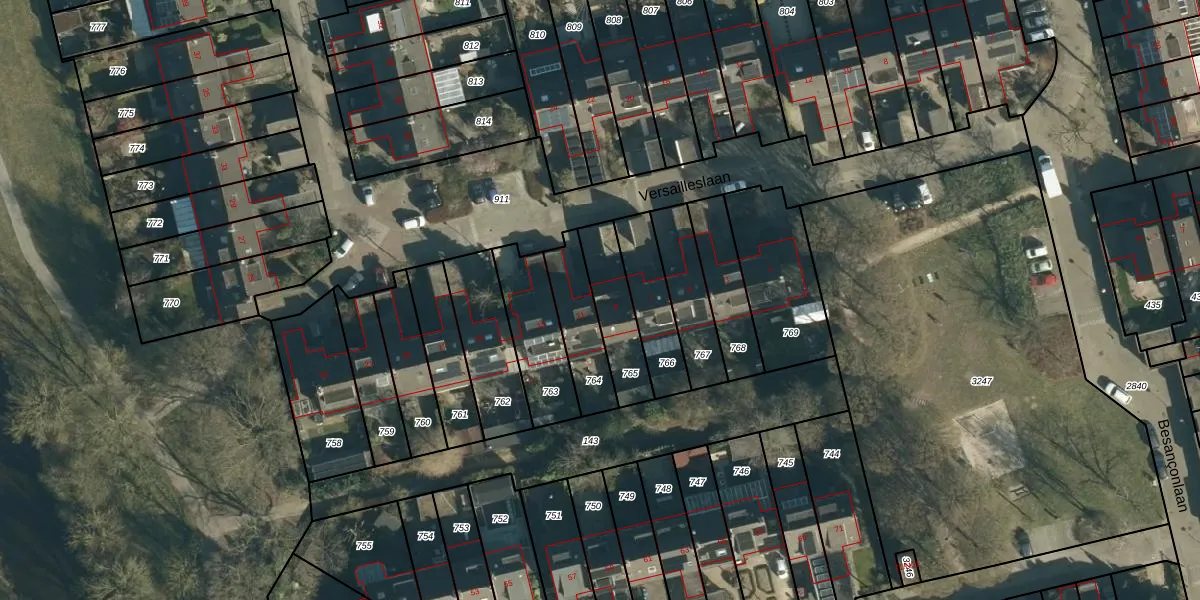 Versailleslaan 9 is gelegen op kadastraal perceel WSL01S765. Deze kadastrale aanduiding is uniek en wordt gebruikt door het Kadaster om eigendomsrechten en andere zakelijke rechten vast te leggen. Het perceel maakt onderdeel uit van de kadastrale gemeente Woensel.