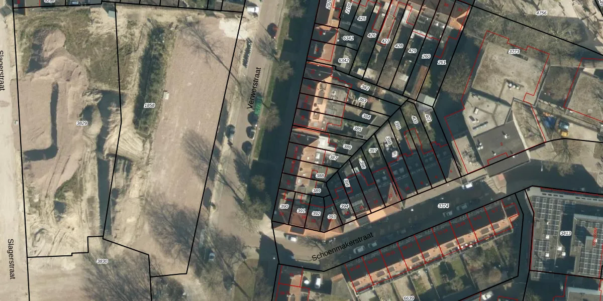 Het perceel waarop Verwerstraat 63-A staat heeft een oppervlakte van 102 m². Dit is een middelgroot perceel. De perceeloppervlakte wordt geregistreerd door het Kadaster. Gedetailleerde informatie over de maten van dit perceel kunt u vinden in het rapport Kadastrale kaart met maatvoering van Verwerstraat 63-A.