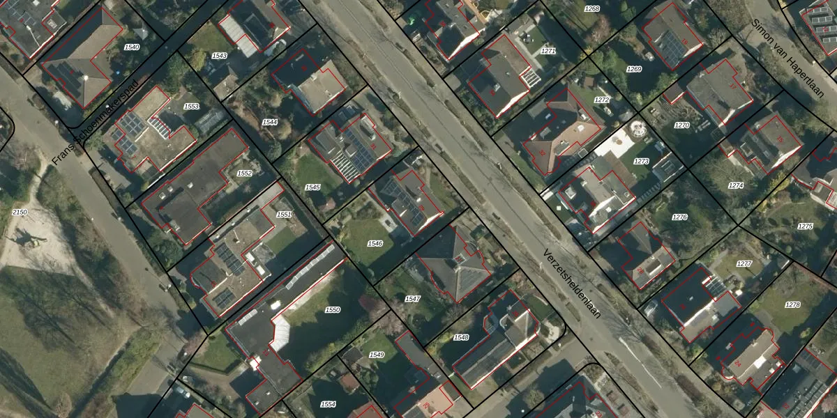 Het perceel waarop Verzetsheldenlaan 29 staat heeft een oppervlakte van 571 m². Dit is een groot perceel. De perceeloppervlakte wordt geregistreerd door het Kadaster. Gedetailleerde informatie over de maten van dit perceel kunt u vinden in het rapport Kadastrale kaart met maatvoering van Verzetsheldenlaan 29.