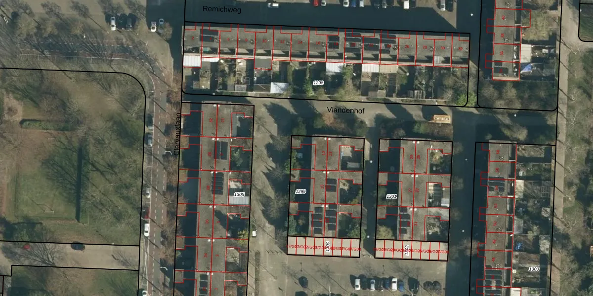 Viandenhof 13 is gelegen op kadastraal perceel WSL01P1299. Deze kadastrale aanduiding is uniek en wordt gebruikt door het Kadaster om eigendomsrechten en andere zakelijke rechten vast te leggen. Het perceel maakt onderdeel uit van de kadastrale gemeente Woensel.