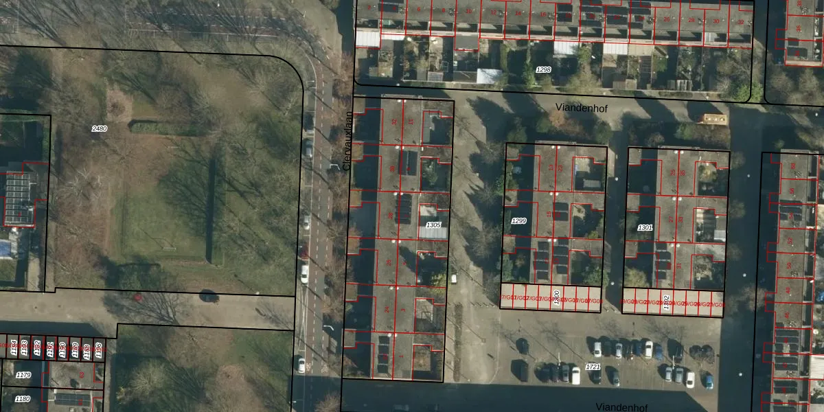 Het perceel waarop Viandenhof 7 staat heeft een oppervlakte van 1676 m². Dit is een zeer groot perceel. De perceeloppervlakte wordt geregistreerd door het Kadaster. Gedetailleerde informatie over de maten van dit perceel kunt u vinden in het rapport Kadastrale kaart met maatvoering van Viandenhof 7.