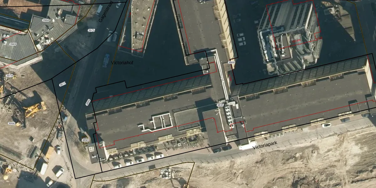 Het perceel waarop Victoriapark 385 staat heeft een oppervlakte van 6525 m². Dit is een zeer groot perceel. De perceeloppervlakte wordt geregistreerd door het Kadaster. Gedetailleerde informatie over de maten van dit perceel kunt u vinden in het rapport Kadastrale kaart met maatvoering van Victoriapark 385.