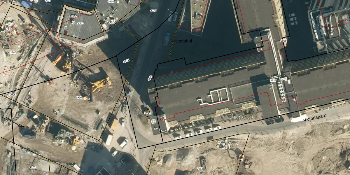 Het perceel waarop Victoriapark 412 staat heeft een oppervlakte van 6525 m². Dit is een zeer groot perceel. De perceeloppervlakte wordt geregistreerd door het Kadaster. Gedetailleerde informatie over de maten van dit perceel kunt u vinden in het rapport Kadastrale kaart met maatvoering van Victoriapark 412.