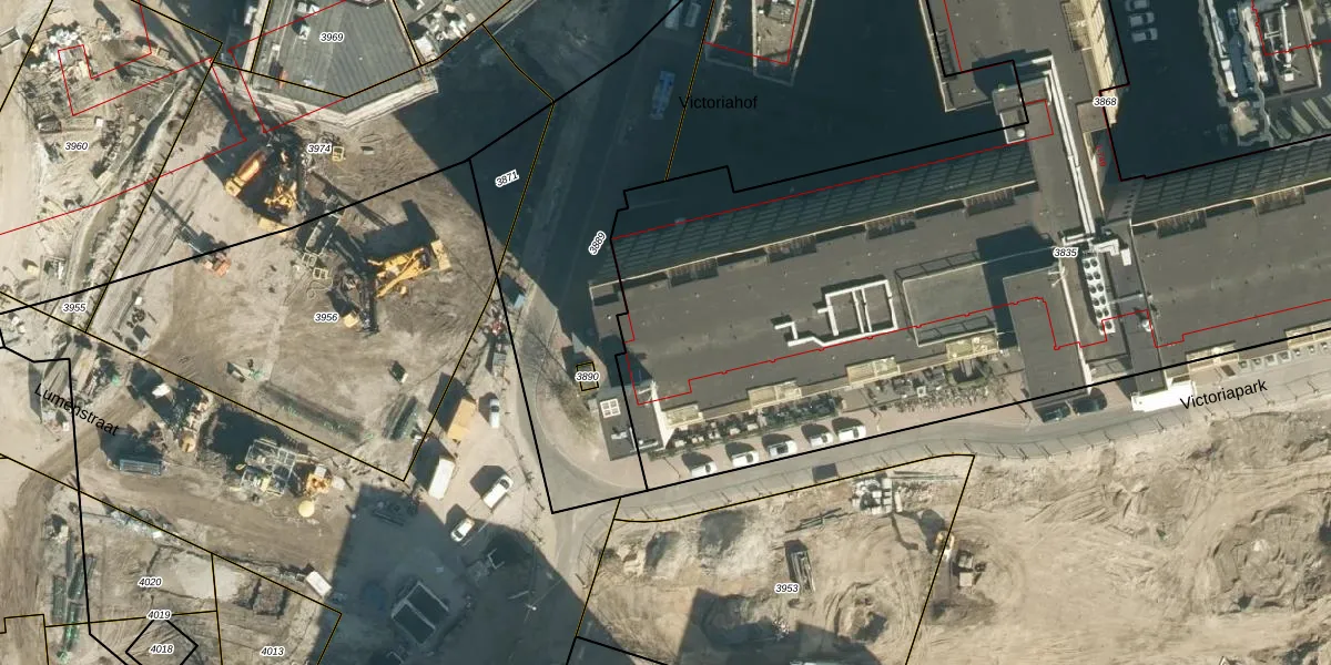 Het perceel waarop Victoriapark 8 staat heeft een oppervlakte van 6525 m². Dit is een zeer groot perceel. De perceeloppervlakte wordt geregistreerd door het Kadaster. Gedetailleerde informatie over de maten van dit perceel kunt u vinden in het rapport Kadastrale kaart met maatvoering van Victoriapark 8.