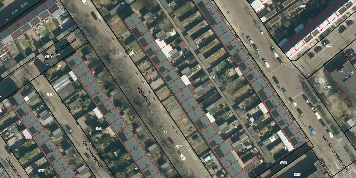 Het perceel waarop Vigliuslaan 33 staat heeft een oppervlakte van 8540 m². Dit is een zeer groot perceel. De perceeloppervlakte wordt geregistreerd door het Kadaster. Gedetailleerde informatie over de maten van dit perceel kunt u vinden in het rapport Kadastrale kaart met maatvoering van Vigliuslaan 33.