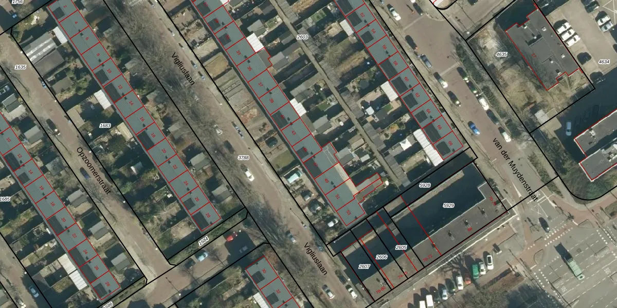 Vigliuslaan 45 is gelegen op kadastraal perceel STR03C2603. Deze kadastrale aanduiding is uniek en wordt gebruikt door het Kadaster om eigendomsrechten en andere zakelijke rechten vast te leggen. Het perceel maakt onderdeel uit van de kadastrale gemeente Strijp.