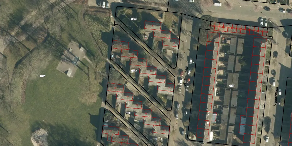 Vijgenstraat 12 is gelegen op kadastraal perceel WSL01C1558. Deze kadastrale aanduiding is uniek en wordt gebruikt door het Kadaster om eigendomsrechten en andere zakelijke rechten vast te leggen. Het perceel maakt onderdeel uit van de kadastrale gemeente Woensel.
