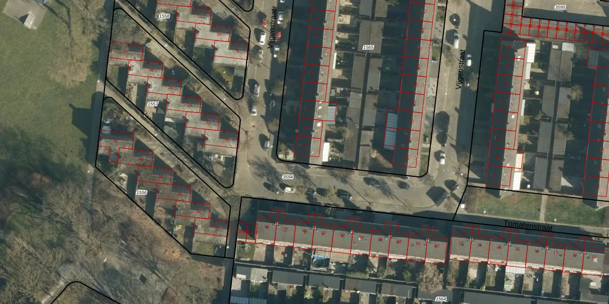 Het perceel waarop Vijgenstraat 23 staat heeft een oppervlakte van 4074 m². Dit is een zeer groot perceel. De perceeloppervlakte wordt geregistreerd door het Kadaster. Gedetailleerde informatie over de maten van dit perceel kunt u vinden in het rapport Kadastrale kaart met maatvoering van Vijgenstraat 23.