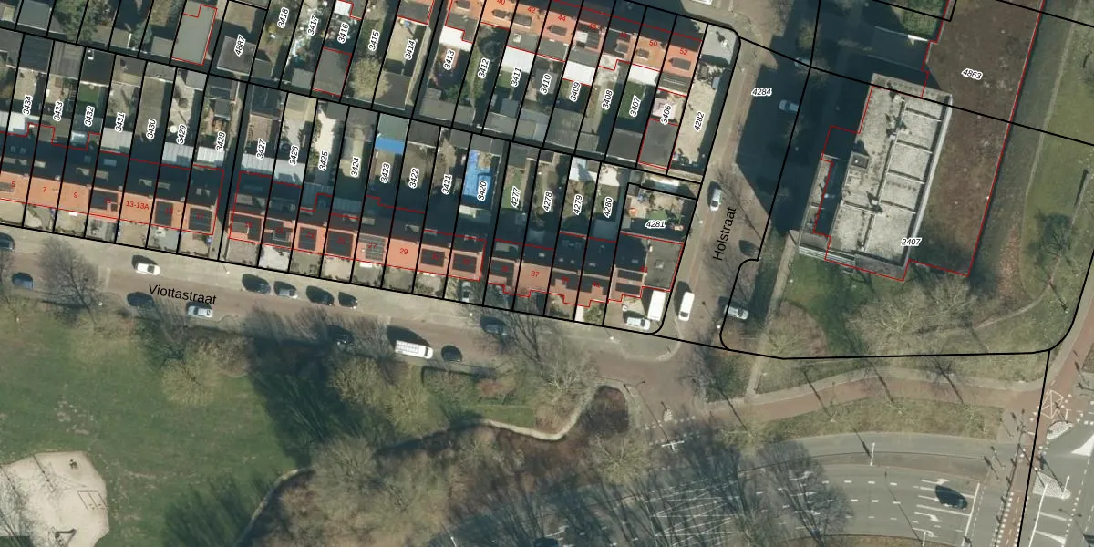 Het perceel waarop Viottastraat 37 staat heeft een oppervlakte van 167 m². Dit is een middelgroot perceel. De perceeloppervlakte wordt geregistreerd door het Kadaster. Gedetailleerde informatie over de maten van dit perceel kunt u vinden in het rapport Kadastrale kaart met maatvoering van Viottastraat 37.