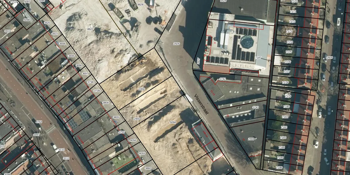 Het perceel waarop Visserstraat 12-G staat heeft een oppervlakte van 464 m². Dit is een groot perceel. De perceeloppervlakte wordt geregistreerd door het Kadaster. Gedetailleerde informatie over de maten van dit perceel kunt u vinden in het rapport Kadastrale kaart met maatvoering van Visserstraat 12-G.