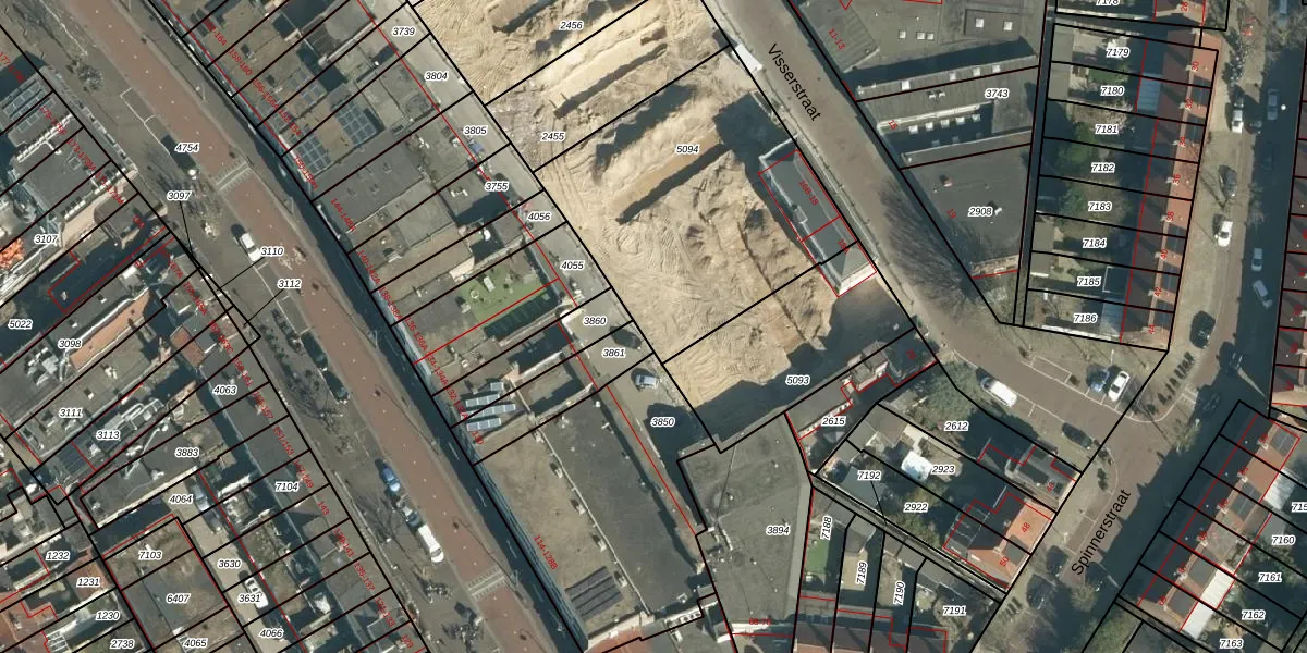 Het perceel waarop Visserstraat 14-06 staat heeft een oppervlakte van 1263 m². Dit is een zeer groot perceel. De perceeloppervlakte wordt geregistreerd door het Kadaster. Gedetailleerde informatie over de maten van dit perceel kunt u vinden in het rapport Kadastrale kaart met maatvoering van Visserstraat 14-06.