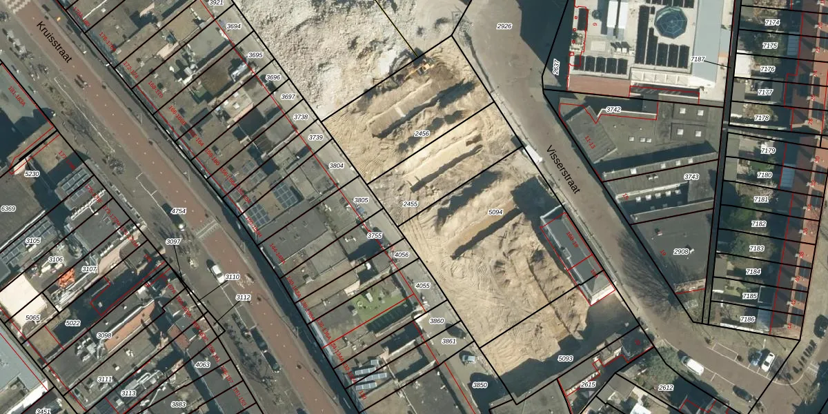 Het perceel waarop Visserstraat 14-23 staat heeft een oppervlakte van 464 m². Dit is een groot perceel. De perceeloppervlakte wordt geregistreerd door het Kadaster. Gedetailleerde informatie over de maten van dit perceel kunt u vinden in het rapport Kadastrale kaart met maatvoering van Visserstraat 14-23.