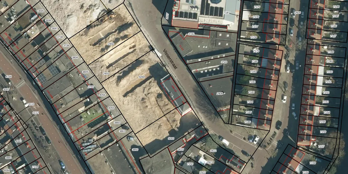 Het perceel waarop Visserstraat 18 staat heeft een oppervlakte van 1263 m². Dit is een zeer groot perceel. De perceeloppervlakte wordt geregistreerd door het Kadaster. Gedetailleerde informatie over de maten van dit perceel kunt u vinden in het rapport Kadastrale kaart met maatvoering van Visserstraat 18.