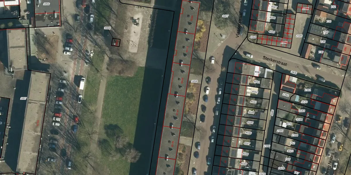 Het perceel waarop Vlasserstraat 49 staat heeft een oppervlakte van 6283 m². Dit is een zeer groot perceel. De perceeloppervlakte wordt geregistreerd door het Kadaster. Gedetailleerde informatie over de maten van dit perceel kunt u vinden in het rapport Kadastrale kaart met maatvoering van Vlasserstraat 49.