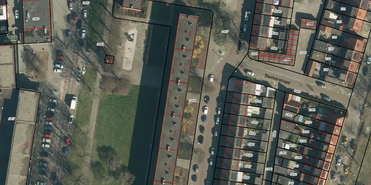 Het perceel waarop Vlasserstraat 59 staat heeft een oppervlakte van 6283 m². Dit is een zeer groot perceel. De perceeloppervlakte wordt geregistreerd door het Kadaster. Gedetailleerde informatie over de maten van dit perceel kunt u vinden in het rapport Kadastrale kaart met maatvoering van Vlasserstraat 59.